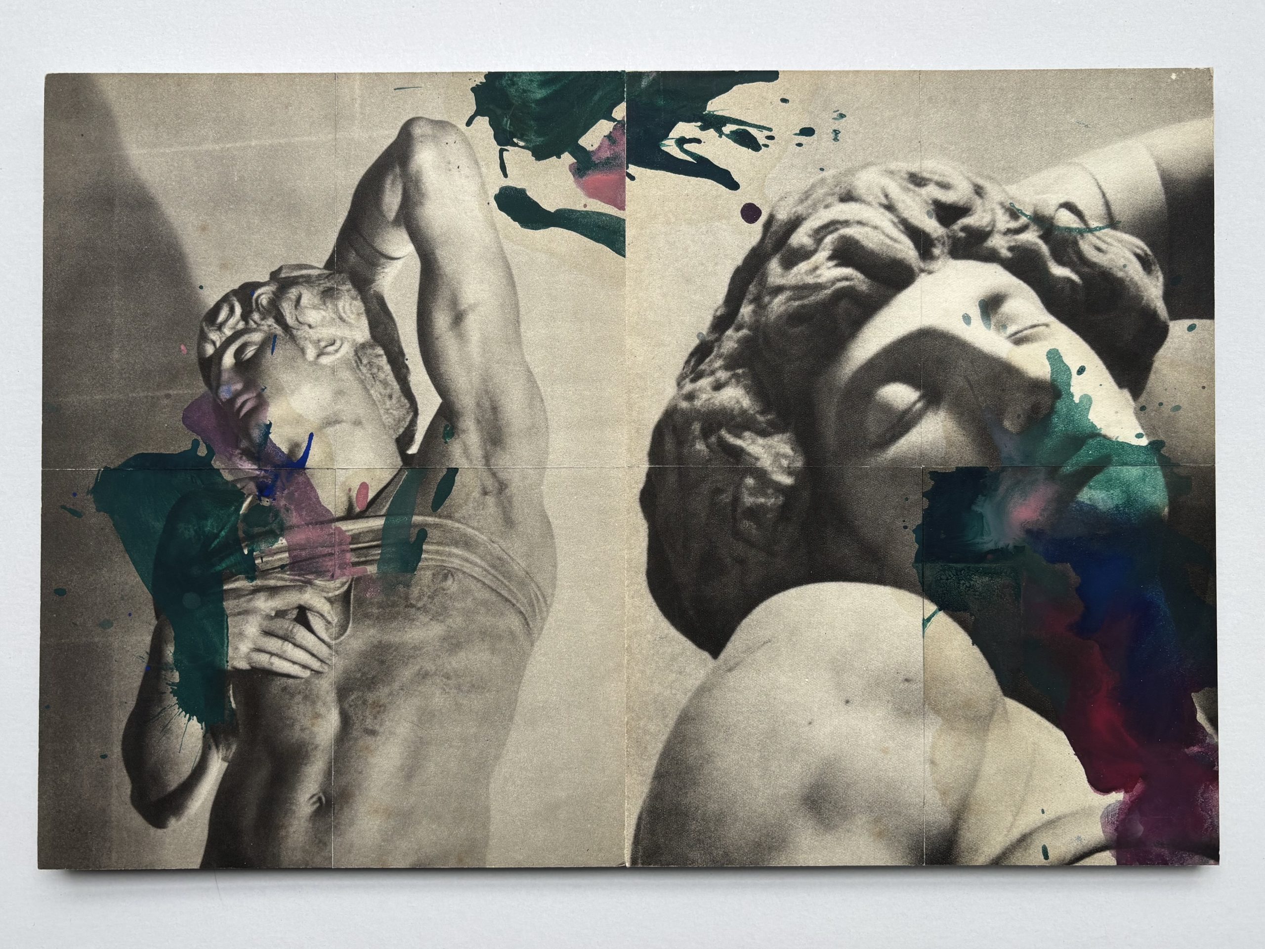 Loin d’être une juxtaposition aléatoire ou surréaliste, les éléments sont minutieusement agencés, résultant d’un long processus à l’atelier. Ils sont intimement liés, tout en gardant leur indépendance. En revisitant ainsi les œuvres anciennes et les images de sa collection, Bernard Joubert crée des passerelles inattendues entre une approche géométrique abstraite et plus figurative, ancrée dans l’art ancien et moderne, en relation étroite avec la photographie. Il aime parler de la manière dont notre regard se renouvelle quand on revient voir une œuvre aimée de manière répétée. Il célèbre ainsi une relation à la peinture toujours vivante.